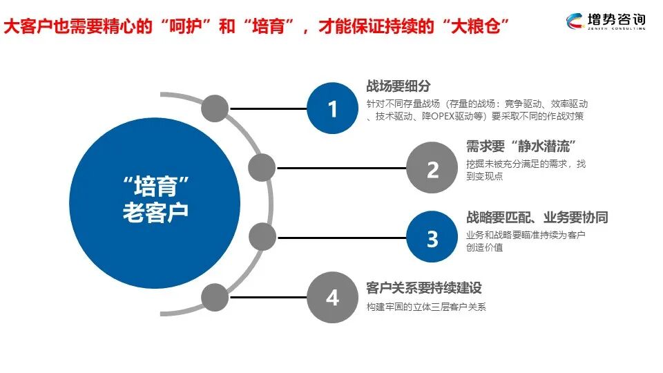 正如一句老话所说:“没有耕坏的地,只有懒惰的牛” ,只有持续耕耘我们的老客户,才能让他们真正成为企业持续的大粮仓。通过细分客户战场、静水潜流、与客户战略匹配以及持续进行客户关系建设,企业不仅可以巩固现有的市场份额,还能开拓新的增长空间。