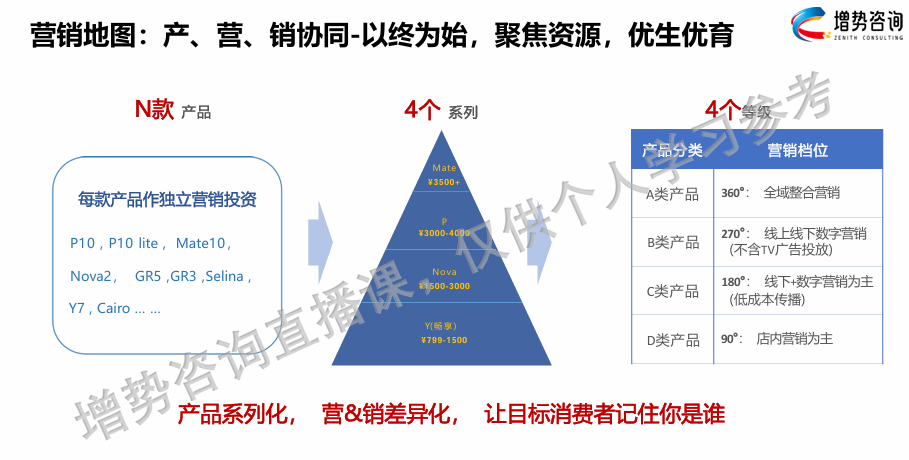 从产品营销的投资角度来说,我过去的经历是把80%的预算会投在一个a类产品mate和一个B类产品P系列上,也是聚焦战略。