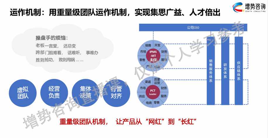 可以理解为专家团队,包含渠道的专家、品牌的专家、产品工艺的专家等,他们都是从各个功能部门选拔出来的,要参与到产品操盘过程之中,讨论具体的细节问题。