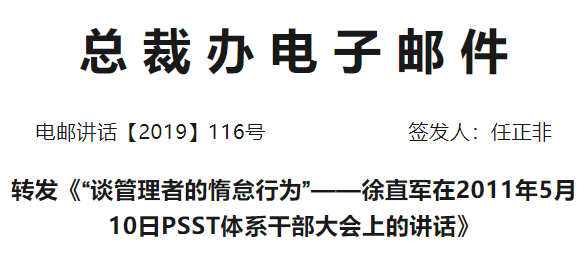 2011年,华为轮值董事长徐直军在一次干部会议中,对华为管理者存在的惰怠行为进行了盘点总结,多达18条,针针见血。